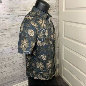 In very good condition. Great Neutral Hawaiian vibes. Well made, 100% cotton. Button down, short sleeves. Colors blue, tan, grayish green and 1 chest pockets. Please see pictures.