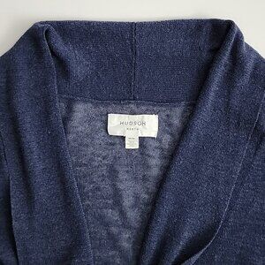 Hudson North Women's Knit Linen Blend Navy Long Open Front Cardigan Pockets Sz M