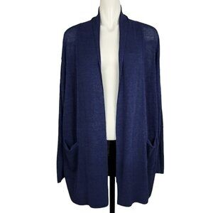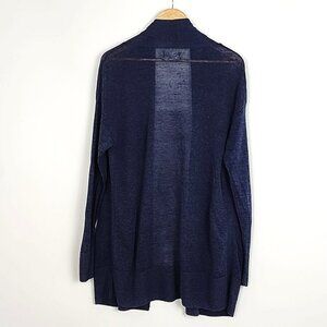 Excellent pre-owned condition, Hudson North women's open front long navy knit linen blend cardigan with two front patch pockets, size Medium.