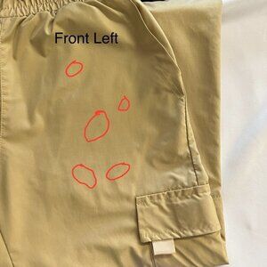 2 front side pockets, 2 cargo pockets , 1 back zipped pocket, elastic waist with drawstring & velcro leg hem cuffs.