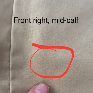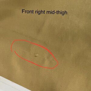 Pale mustard yellow color with a matte sateen exterior feel. The fabric has a light stretch to it as well.