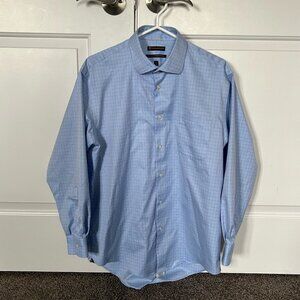 Hudson Room Men's Button Down Dress Shirt Blue with Stripes Size 16.5/33
