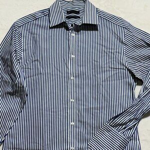 Hudson Room Slim Fitted 80's Two Ply Dress Shirt Striped Blue Mens 15.5 / 35