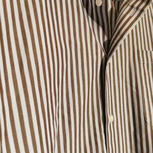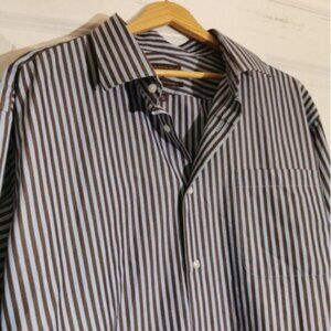 Hudson Room blue and brown button down shirt. Blue and Brown stripes. Size 18 neck, 34" sleeve length, equals an XXL. GREAT condition! Hudson Bays line of shirts.