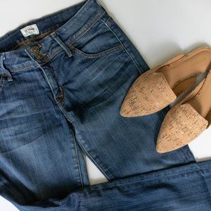 Soft, stretchy, two-button fly. Mid-wash. Ankle-Nicole Style. Inseam 29".