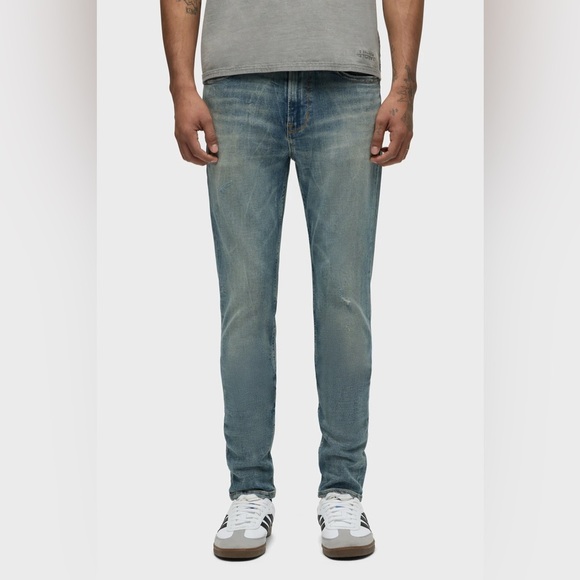 For a snug fit, look no further than our Zack Skinny Jean. Mid-rise, slim through the hip and thigh with a narrow leg and 34” inseam. Designed in vintage-inspired, light indigo wash with subtle destruction and grinding along the edges for a lived-in look. Finished with dull nickel hardware and leather back patch.