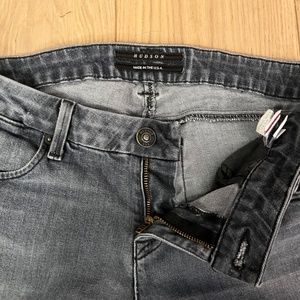 Hudson grey denim, ankle length low waist. Size 28 (but fits 26/27) inseam 26. Great condition.