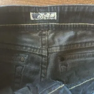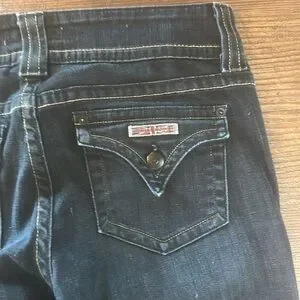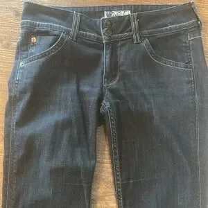 Inseam 32. Waist 32” with belt loops. Rise is 8”. They are in like new shape. Dark denim Blue. Nice material bootcut is 9”