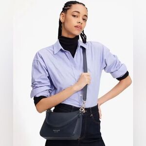 The Hudson bag converts from a crossbody with an adjustable strap to a shoulder bag, just by switching out the straps.