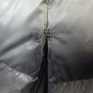 Condition: Both front pocket seams show fraying stitches. Exterior shows light surface wear and minor scuffing but fabric remains intact overall; zipper functions properly.