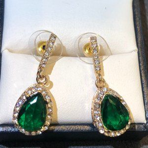 Hudson's Bay Emeral Green Drop Earrings and Sparkling Cristals for an elegant look.