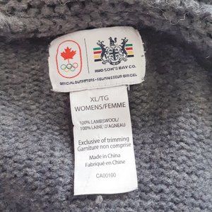 It's a Hudson's Bay Lambswool Olympic Cardigan with Beavers! Although the tag says XL it fits me perfectly and I am normally a small/medium. I'm 5.2 1/2 and 120 lbs and have to turn the cuffs up because the sleeves are about 3 inches too long but other than that it's a good fit. The chunky metal zipper is smooth and the wool is soft. There are two little pockets and a pair of beavers right there on the chest. Says "CANADA" across the back.