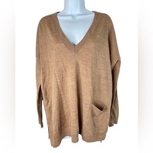 Hudson's Bay Moon Women's Sweater Pullover Merino wool Side slit Brown Size XS