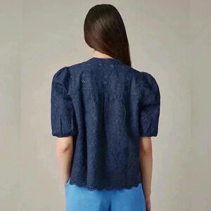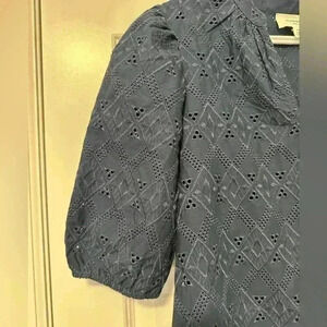 Hudson’s North Splitneck Pointelle Poplin Blouse Navy Blue Size Large Women’s