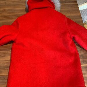 Hudsons Bay vintage red wool, silver fox trimmed hooded jacket, womens medium