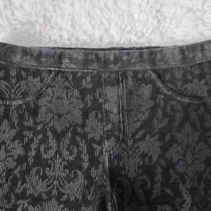 Hue printed corduroy legging. Color: Black/Grey Printed. SIZE: S (4/6) (waist measures 13.25") Features: