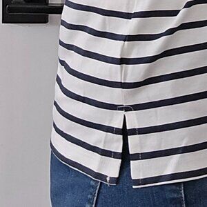 Has buttons at neckline and small side slits at the bottom