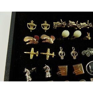 Elevate your style or expand your collection with this lot of 35 men’s cufflinks, featuring a mix of vintage classics and designer pieces. Spanning from the 1950s to present day, this collection includes some signed pieces with brands such as Swank, Hickok, Anson, Stratton and Shields.