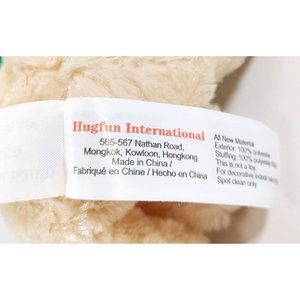 Hugfun Christmas Dog Plush Ornament Beige w/Green Red Hat Scarf 6"