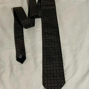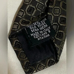 Hugo Boss 100% silk necktie brown geometric square tile pattern career office