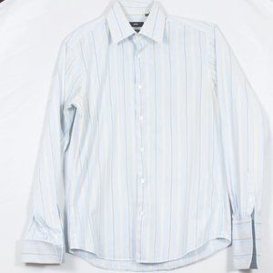 Hugo Boss 15.5/39 (15x34) Men's Dress Shirt French Cuff Blue Green Striped