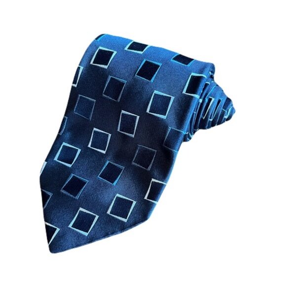 Hugo Boss 57 x 3.5 Blue Square Design Silk Made in Italy Neck Tie