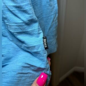 Hugo Boss - Blue Office Wear Basic Casual Long Sleeve V-Neck Shirt in Size XL