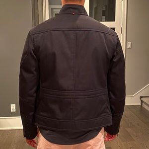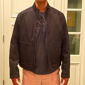 Size 40R men’s Hugo Boss bomber jacket. Jacket fabric content is 100% polyester fibers and the lining of the jacket is 100% cotton. Features include zip closure, inside pocket, and side pockets. Jacket is in very good condition.