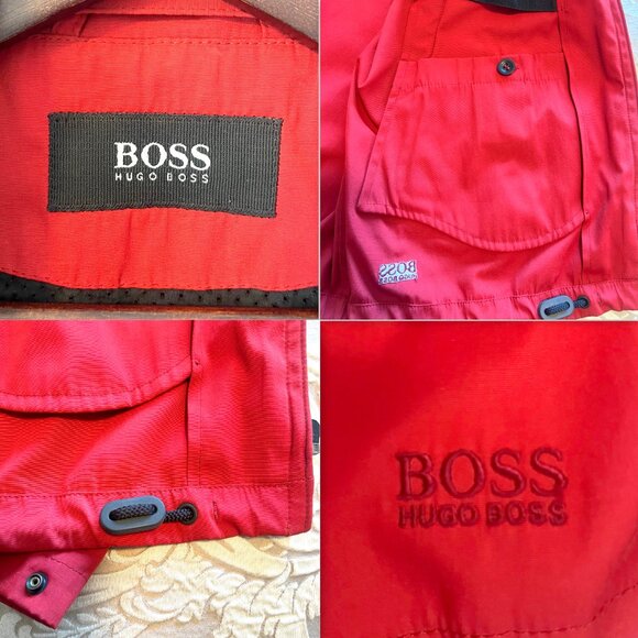 Stay stylish and protected from the wind with this HUGO BOSS Zip-Up Windbreaker Jacket! Made with a polyester and cotton outer shell, this jacket is both durable and comfortable. The red color adds a pop of boldness to your outfit, while the cotton and nylon lining provides extra warmth and comfort. Designed for men in a regular size 2XL, this windbreaker jacket is perfect for outdoor activities or casual wear. The zip-up closure and wind-resistant fabric make it a practical choice for any weather. Elevate your wardrobe with this sleek and functional HUGO BOSS jacket!