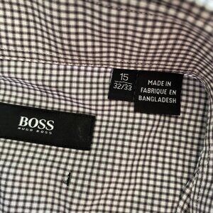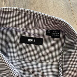 Hugo Boss Check Pattern Button-Down Dress Shirt. In excellent condition with no visible flaws or defects (tears, stains, damage, pilling). Great for work or an event. Great classic closet staple.