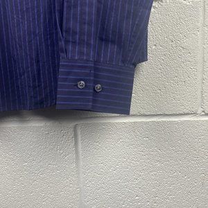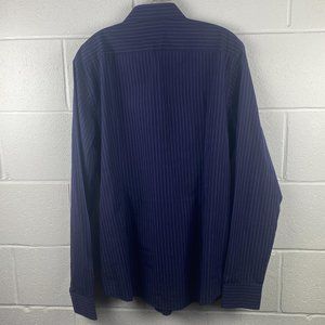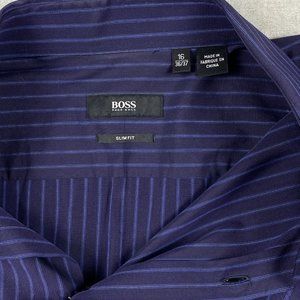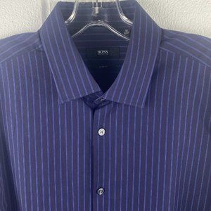 Hugo Boss Dress Shirt Mens 16 Slim Fit Blue Striped Long Sleeve