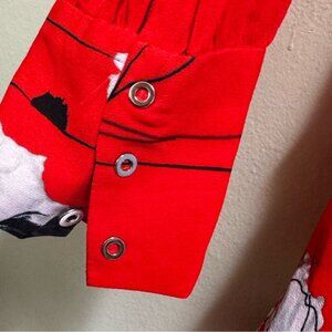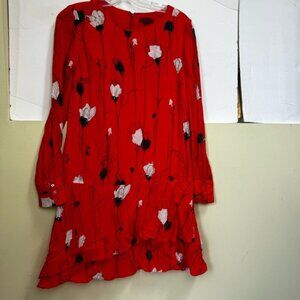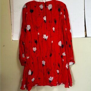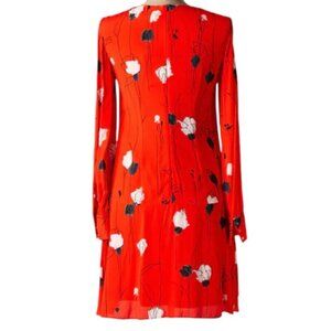 Hugo Boss Floral Midi Dress Tiered Skirt Long Sleeve Lightweight Crew Neck Red 6
