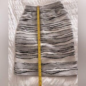Sophisticated Hugo Boss pencil skirt with gray and black stripes. Ideal for office or evening wear. Wool and silk blend. Quality made fabric.