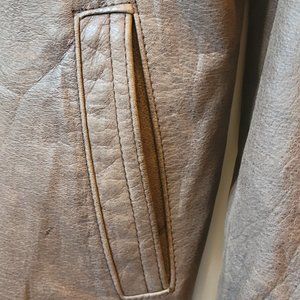 Hugo Boss, EUC, Size XL,vintage, brown, button front fully lined leather jacket, with lightly lined shoulder pads to provide structure, notched collar, front slip pockets, not a lightweight jacket, great for fall or spring . Minor signs of wear, with some wrinkles in the leather per pics. Stunning jacket!!