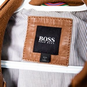 Beautiful, distinctive leather jacket by BOSS Menswear. Timeless jacket in super soft brown/tan nappa leather with an elevated look and feel.