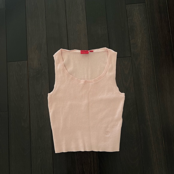 HUGO Boss Tank Top, Ribbed Knit Top, Pink Designer Tank, Sleeveless Scoop Neck. Quiet Luxury, Old Money, Neutral, Soft Girl, Office Siren (if styled for work).
