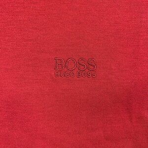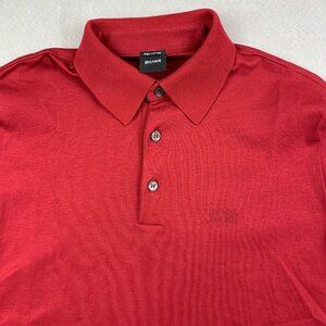 Hugo Boss Mens Shirt Small Red Polo Long Sleeve Pima 100% Cotton Luxury Logo