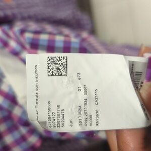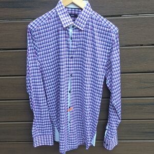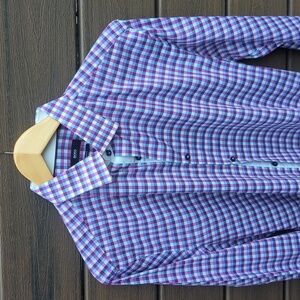 Gorgeous dress shirt, worn a few times kept with care and dry cleaned. Elegant plaid design with button-down style.