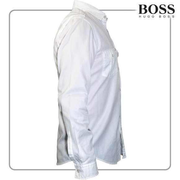 Hugo Boss Men's White Button Down Waffle Fabric with Epaulettes (size Large)