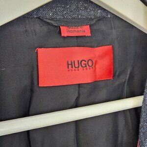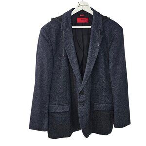 Hugo Boss Mens Wool Silk Blend Sports Coat, Removable Hood, Casual, Blue, 46R