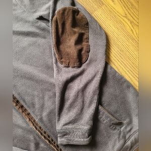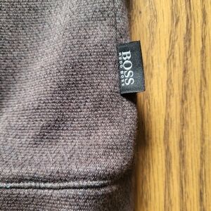 Stylish turtleneck sweater by Hugo Boss. Rich brown color. Features elbow patches for added style.