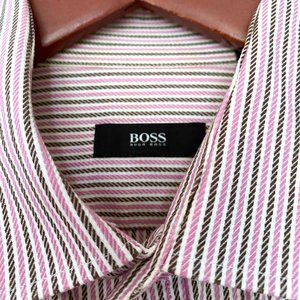 Hugo Boss Pink & Grey Striped Dress Shirt | Hugo Boss Mens Shirt