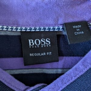 Hugo Boss Purple & Black Striped Polo Shirt – Size M #66