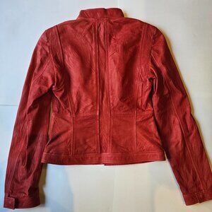 A Hugo Boss red leather jacket, crafted from 100% calf leather, adds a luxurious touch to your outfit. Its supple texture and rich hue elevate any ensemble, making it a standout piece in your wardrobe. This high-quality material ensures durability and comfort, allowing you to wear it with confidence for years to come. Pair it with neutrals like black, white, and gray for a classic look, or experiment with complementary colors like mustard yellow, deep purple, or emerald green to make a bold statement. Whether dressed up or down, this stylish jacket is sure to turn heads wherever you go.