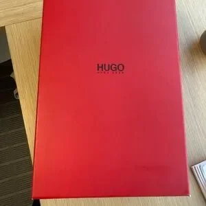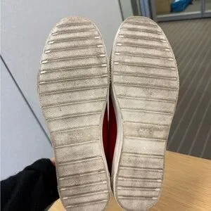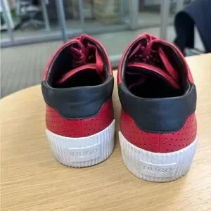 Hugo Boss red shoes. Come with box from Hugo Boss but the box is for different shoes. Worn 3x. If you just take a magic eraser to the soles they will literally look brand new I just don’t want to do that lol