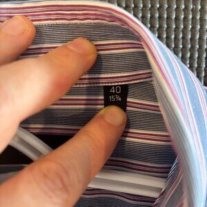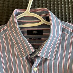 Hugo Boss Regular Fit Dress Shirt Blue Red Stripe (40/15¾ M)