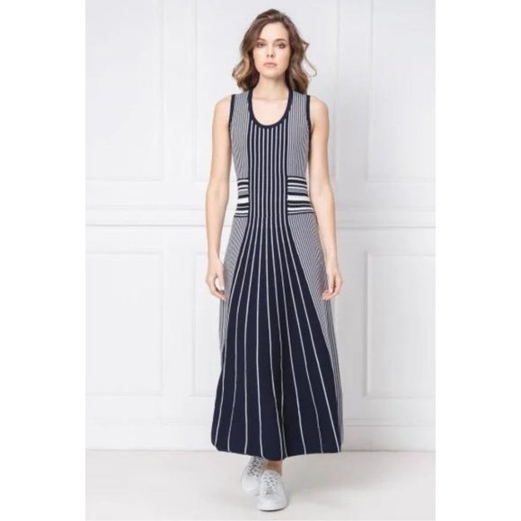 Hugo Boss Silbiana Stretch Maxi Dress Grey Fantasy Navy Blue White Size Medium