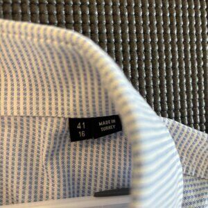 Hugo Boss Slim Fit Dress Shirt Blue Micro Stripe Canclini Fabric (41/16 M)