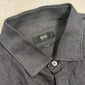 Hugo Boss Slim Fit Dress Shirt Denim "Isaak" Cotton Long Sleeve Grey 41 16 Large