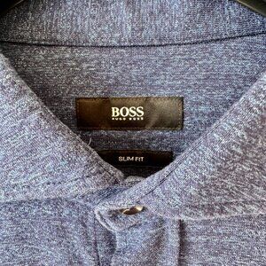 Upgrade your wardrobe with this Hugo Boss Men’s Slim Fit Stretch Cotton Button-Up Shirt. Designed with a modern slim fit and crafted from stretch cotton, this shirt delivers both comfort and sharp tailoring. Featuring a classic collared neckline, button-front closure, and Hugo Boss’s signature refined design, it’s perfect for office wear, business casual looks, or polished weekend style. Effortless to dress up with trousers and blazers or pair down with denim.